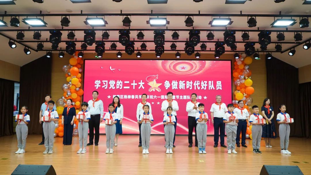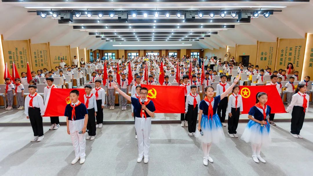 活动现场,与会嘉宾们为新入队的少先队员们佩戴了红领巾,为新建中队授中队旗,见证了党、团、队三旗传递,徐冬梅为孩子们送上了“六一”寄语,PA集团官网为孩子们赠送了入队成长礼物。