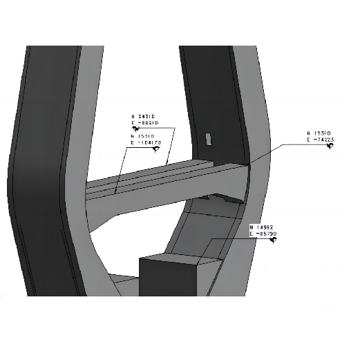 由BIM模型提取的工程任意定位点的精确坐标和高程,大大提高了定位放样以及复核测量的效率和准确性,减少测量的内业计算工作,施工测量所需内业人员减少30%-50%。