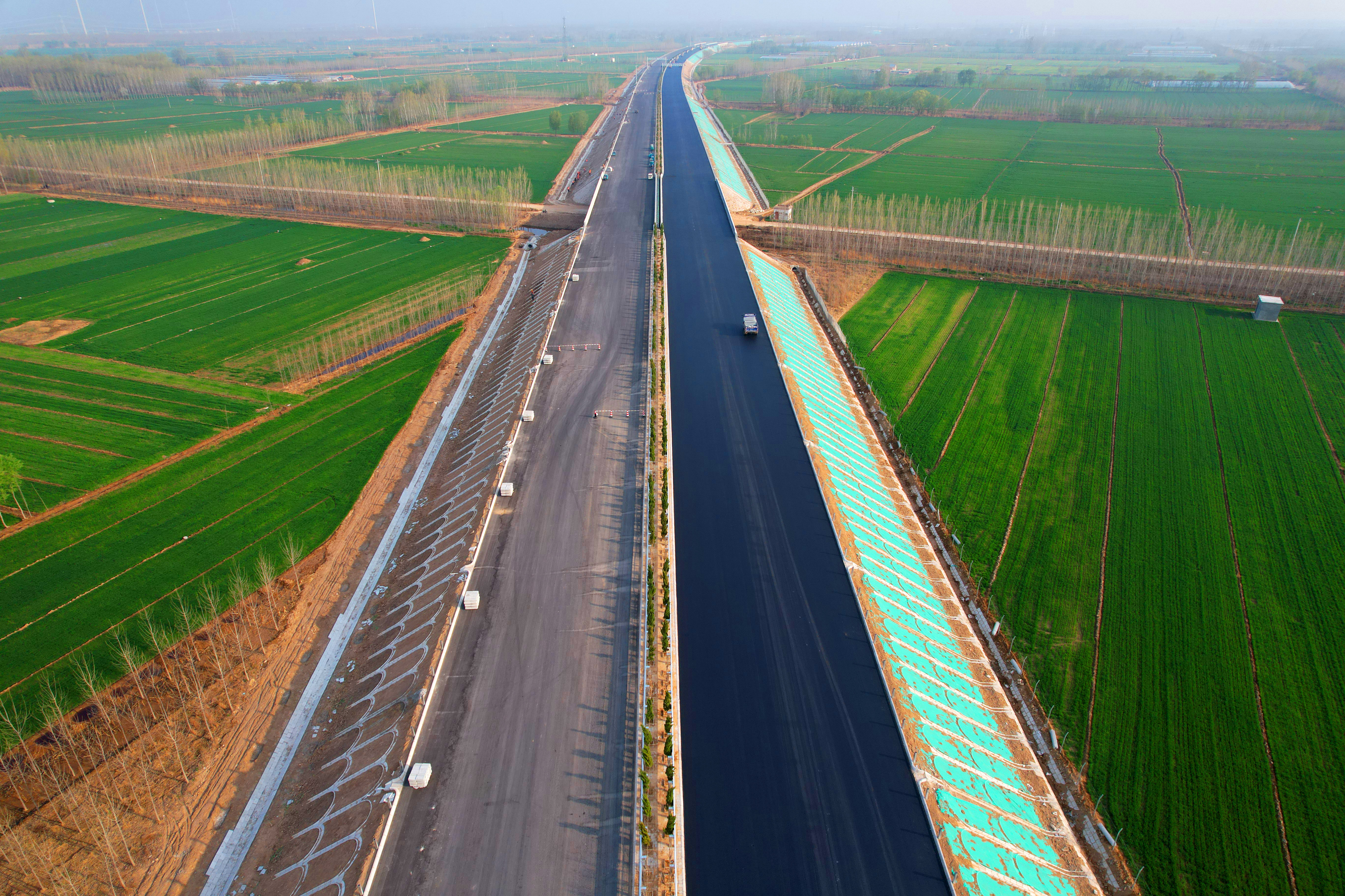 城建集团公司承建的大西环项目二分部主线总长度19公里,安仁互通匝道总长20公里,伦镇互通收费站匝道总长6公里,设计3层水稳,总面积约171万平方米。