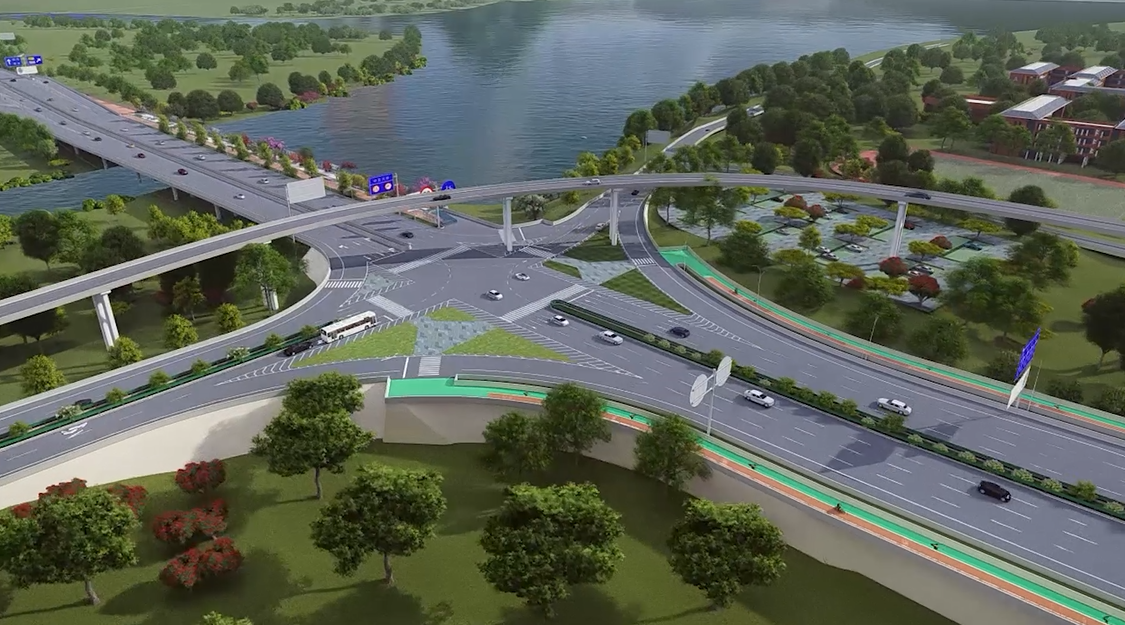 仲宫大桥立交全长691.4米,全桥包含桩基186颗、墩柱156颗、预应力小箱梁270片,是S103全线最大的构筑物。