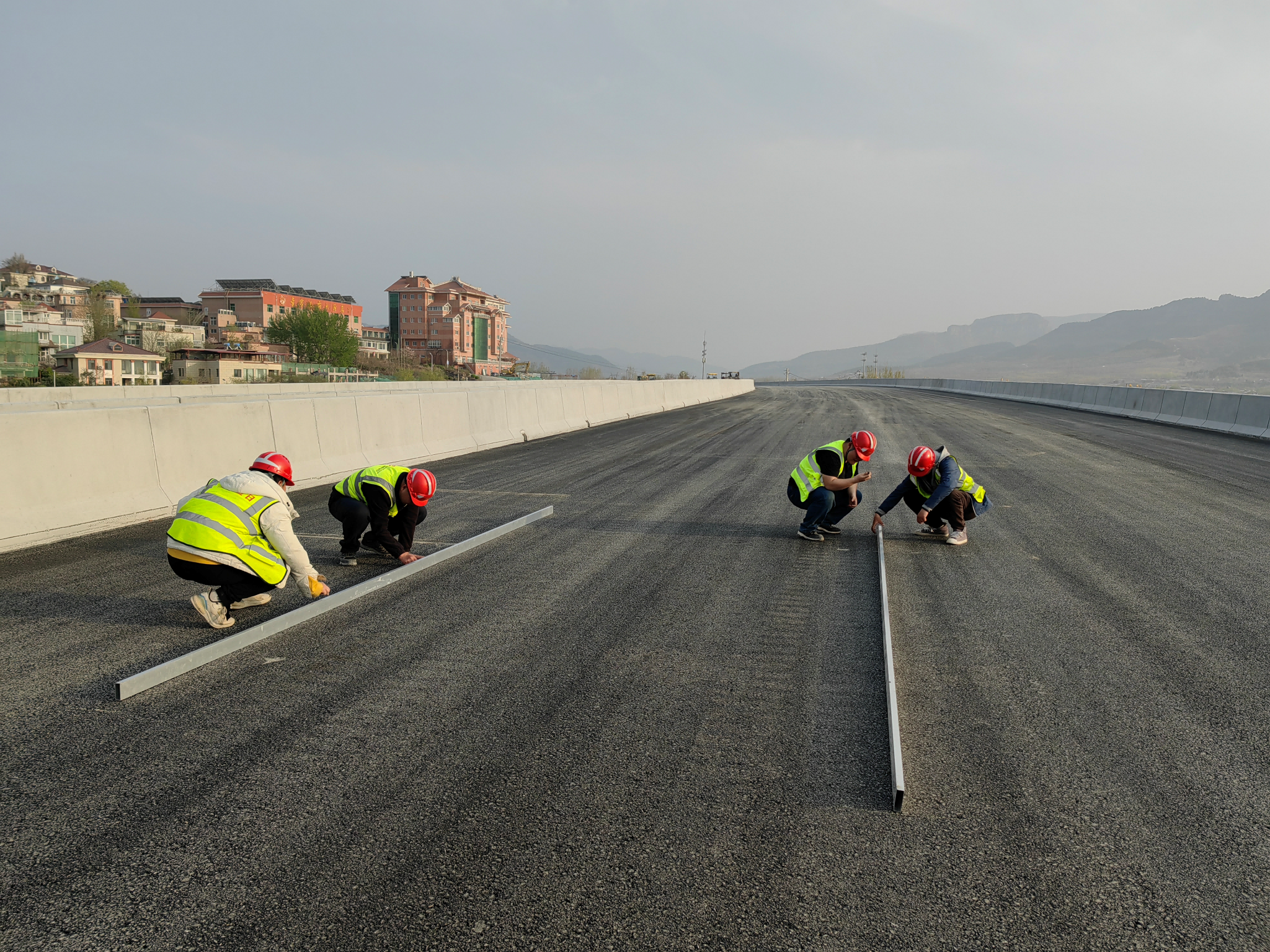 仲宫大桥宽度不一,为确保沥青上面层摊铺的质量效果,项目部强化前期筹划,严把材料质量关,对沥青混合料的拌合工艺、运输、摊铺温度及速度等各个环节做了详细部署。施工中做好各环节全程监控,严格控制沥青、矿料加热时间、温度、混合料拌和时间、均匀性、厚度等技术指标。借助机械指挥官系统,实时监测摊铺机、压路机的行进速度。复压完成后立即组织现场技术人员使用6m直尺对上面层平整度进行初步检测,对轮迹明显的位置安排压路机再次进行斜压处理,以确保上面层平整度符合预设目标,真正做到品质“看得见”。经现场检测,上面层平整度为0.6,实体检测项目完全达到优良目标。