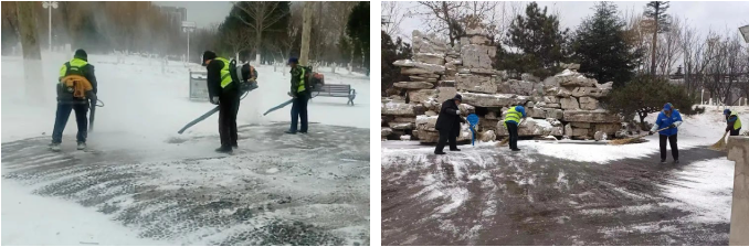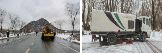 通过大家的辛勤工作、团结协作,三个园区一、二、三级道路,出入口及重点区域的积雪得到及时清理,通畅的道路,开阔的广场,也营造出浓厚的节日氛围,为广大市民游客带来良好体验。