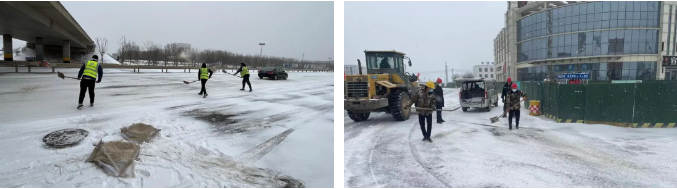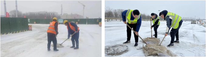 各项目在接到降雪预报后,按照要求提前做好各项清雪除冰准备工作,并安排人员在岗值守,密切关注雪情路况,第一时间撒布融雪剂、铲雪、除冰,机械作业与人工作业交替进行,对重点路段进行铲、推、扫、堆一体化循环作业,加快清理道路积雪,为来往行人车辆清理出安全整洁的通道,为市民群众平安出行保驾护航。