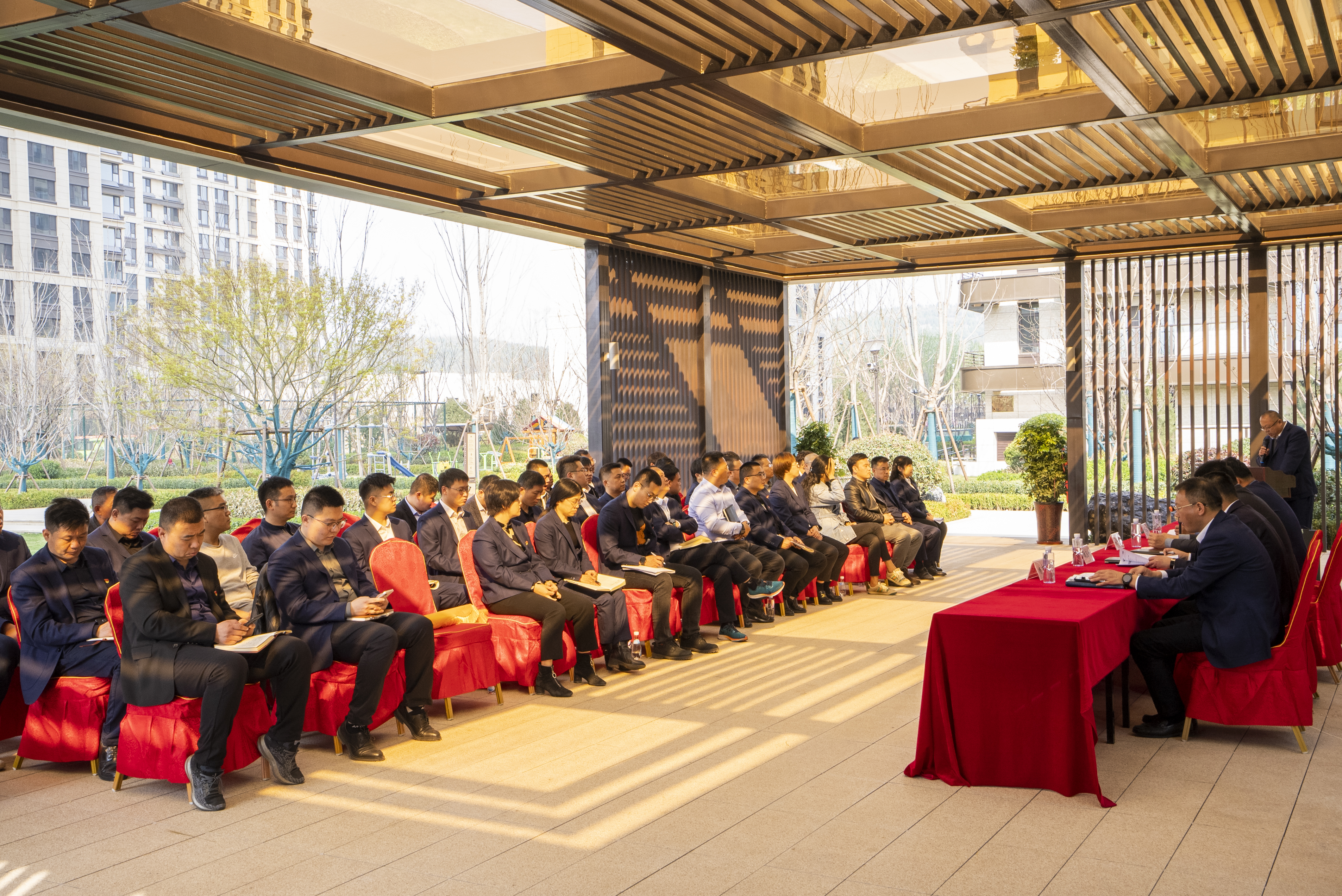 会前,与会人员参观了天风云墅二期建设情况,该项目通过“攻坚奋战160天、融心协力交好房”活动实现提前7个月高质量竣工交付的管理目标。
