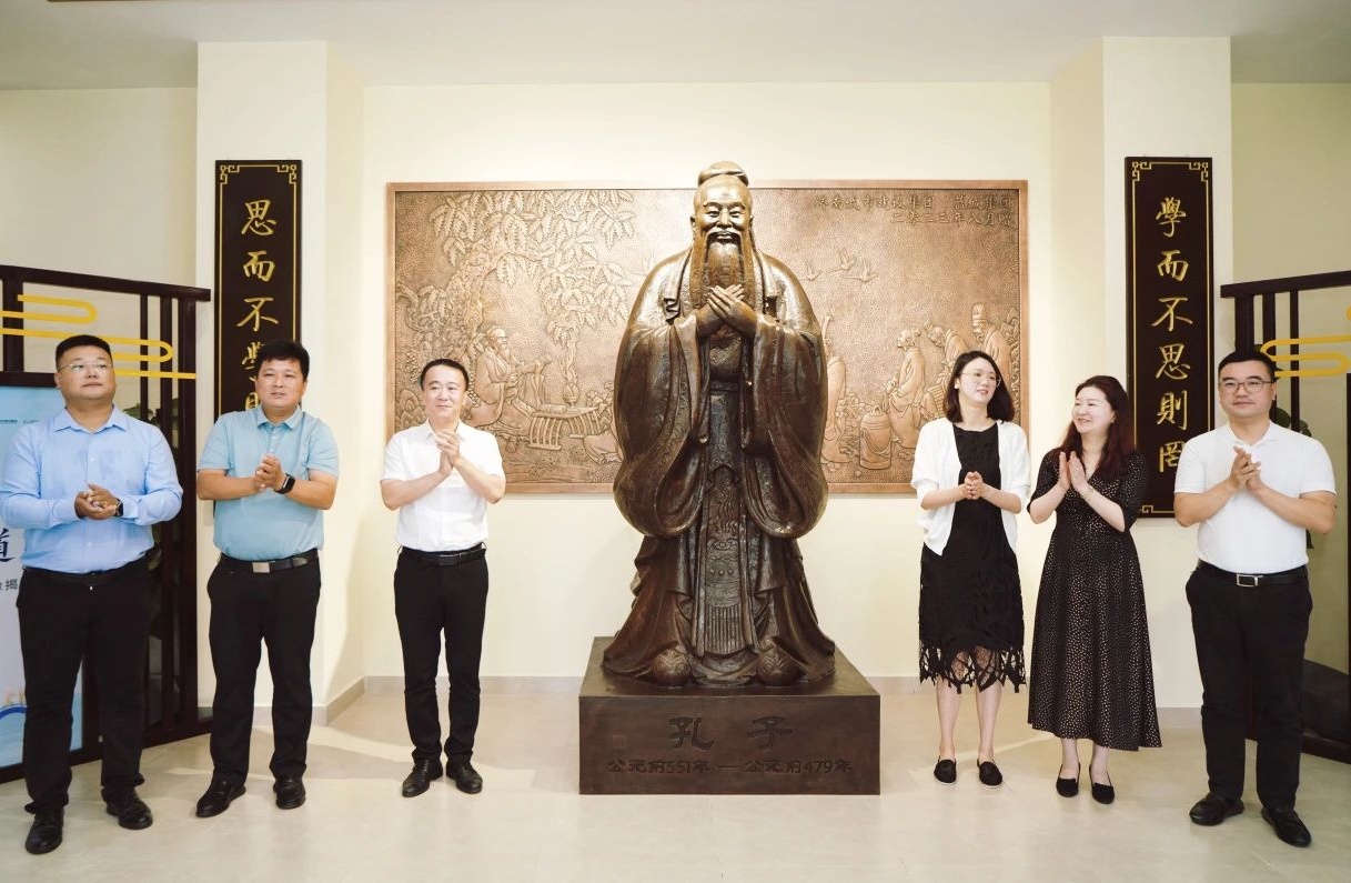 此次捐赠的孔子像由孔子博物馆孔子像雕塑大师韩枫制作,铜像双手交叉于胸前,交叠的手大拇指不露出,象征着为人谦恭有礼,四指并拢未出,则有四海之内皆兄弟的天下大同的象征意义。杨柳春风学校所秉持的“天赋自由 百花竞芳”的办学理念,正是孔子有教无类、因材施教的思想与精神的生动体现,学校推出多门项目化学习课程,将课内与课外融合、书本与实际相连,致力将每一个孩子成长为最好的自己。铜像进驻校园,不仅唤醒同学们内心对中国文化的情感共鸣,更激励学子们以孔子的智慧与人格比照自己的进步与成长,努力成为诚信、仁爱、坚毅、有为的人。