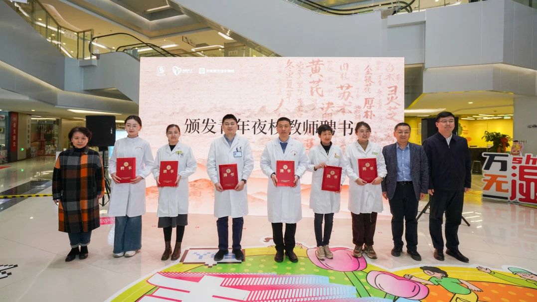 活动中,与会领导启动了“青年夜校青年名中医系列课程”,并为青年名中医教师代表颁发了聘书,随后参观了集团青年夜校教学场地及中医市集。