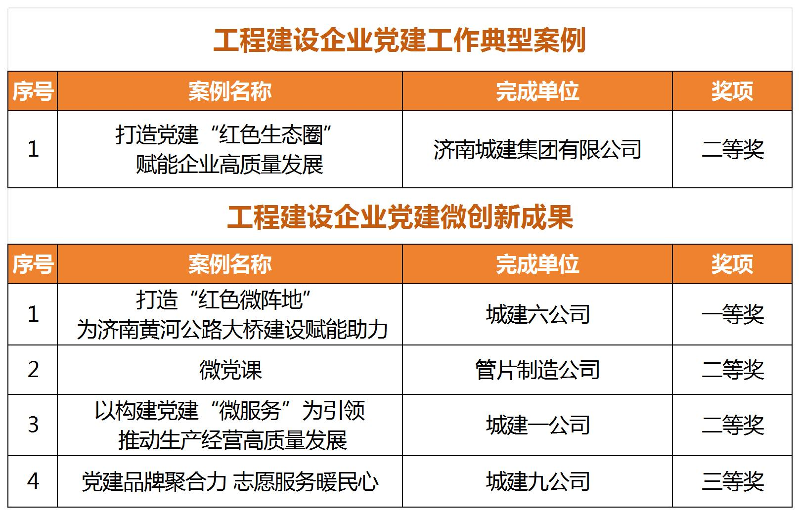 近日,中国施工企业管理协会发布了《关于推广2024年工程建设企业党建工作优秀成果的通知》,PA集团官网所属济南城建集团公司《打造党建“红色生态圈” 赋能企业高质量发展》党建工作案例获评“工程建设企业党建工作典型案例”二等奖,城建六公司《打造“红色微阵地 ” 为济南黄河公路大桥建设赋能助力》、城建一公司《以构建党建“微服务”为引领 推动生产经营高质量发展》等4项案例分别获评“工程建设企业党建工作微创新成果”一、二、三等奖。