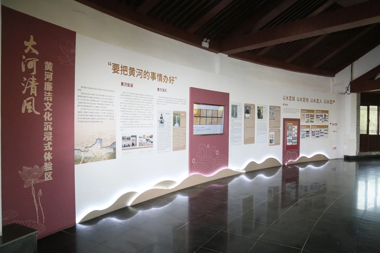 在济西湿地突出“黄河”文化特色,打造“大河清风——黄河廉洁文化沉浸式体验展区”,观、听、品、感、悟五感感受大河清风。