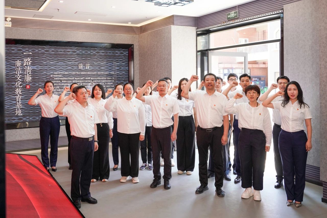 活动中,党员干部们深入参观了“听·泉廉之声”“寻·泉映清辉”“悟·泉心匠作”三大篇章,通过观看视频、多媒体互交等形式,回顾了历史上著名的廉洁人物和事迹,进一步领悟了廉洁精神的深刻内涵,不仅增强了廉洁自律意识,也在参观交流中加深了两个党支部之间的合作联系。参观结束后,许为民同志带领大家重温入党誓词。