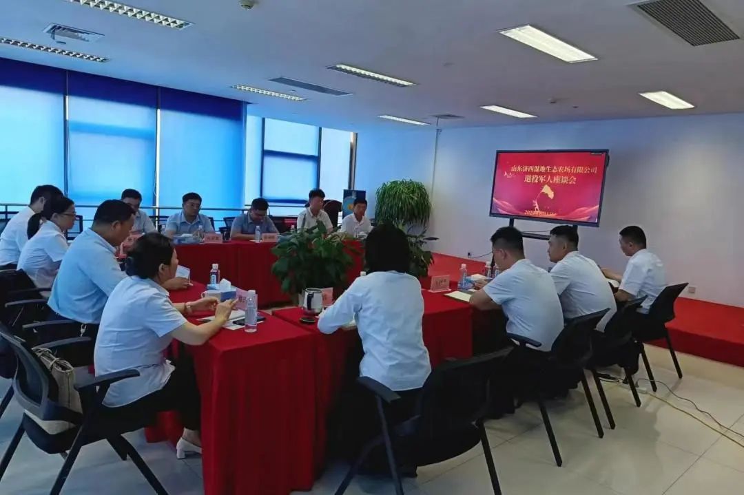 8月1日,山东济西湿地生态农场有限公司召开“退役不褪志,退伍不褪色”主题座谈会,公司中层以上负责人及全体退役军人参加会议。会上,全体退役军人面向军旗重温军人誓词,共同回顾军旅生涯的点点滴滴,围绕角色转变和初心坚守等方面发表感悟,畅谈在公司的责任与担当。