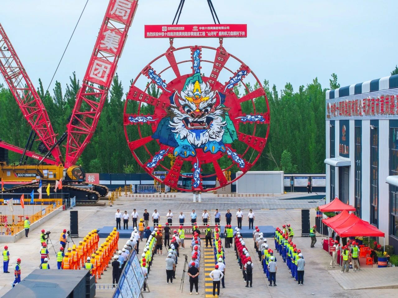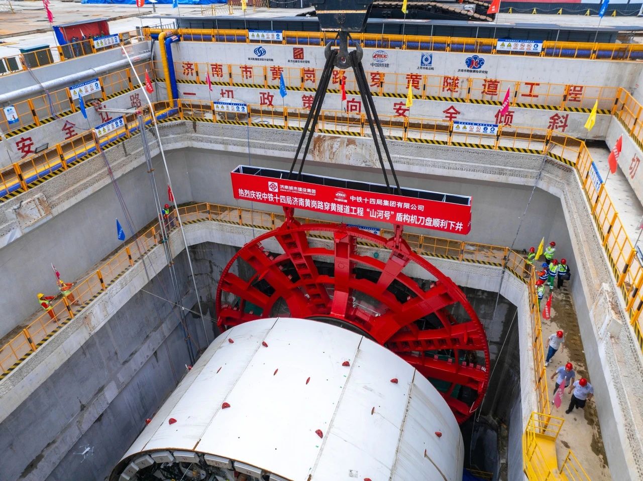 7月24日,由PA集团官网投资建设,中铁十四局集团承建的济南市黄岗路穿黄隧道迎来关键节点,“山河号”盾构机刀盘吊装下井,进入始发井预定位置,标志着世界最大直径水下隧道盾构始发进入“倒计时”。