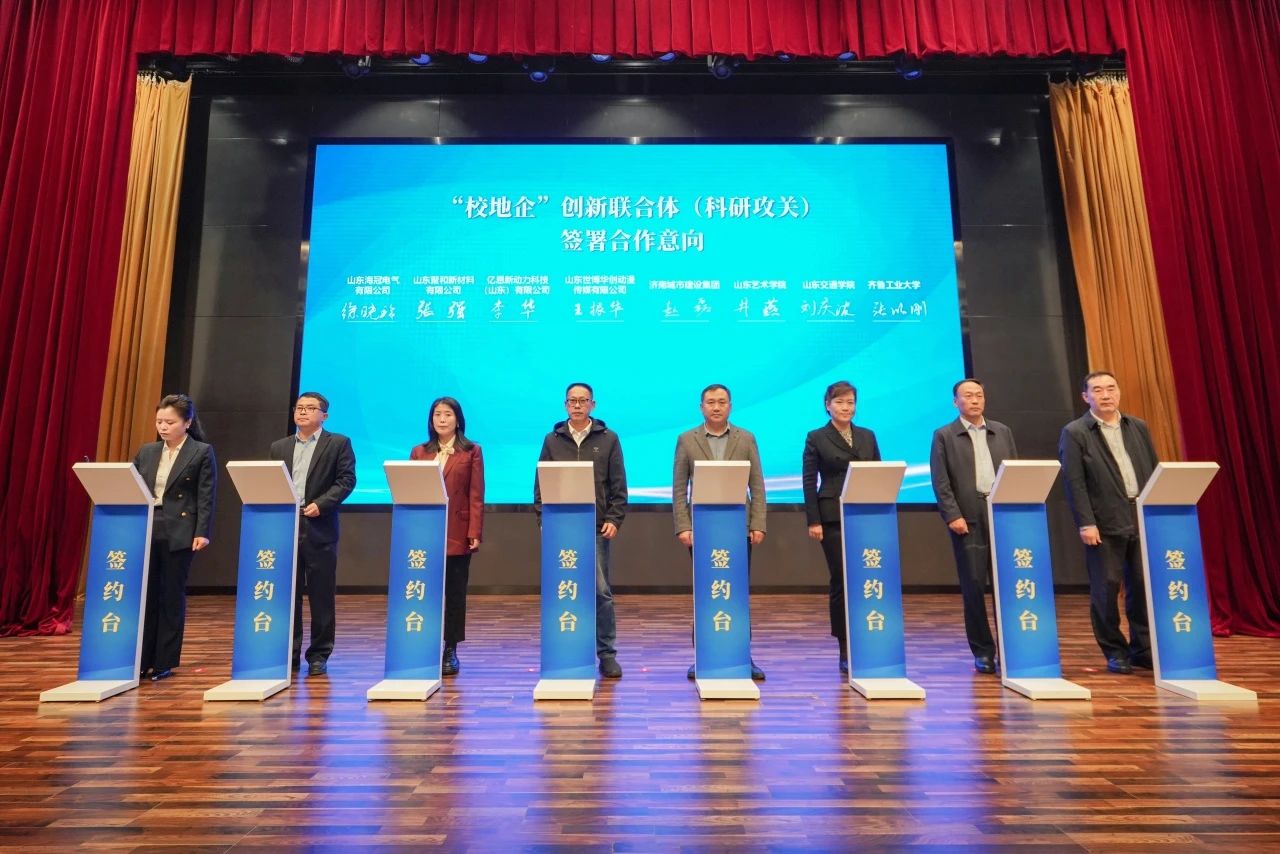 会上,PA集团官网与齐鲁工业大学、山东交通学院、山东艺术学院等7家单位签订合作意向书;集团所属山东金宇信息科技集团有限公司作为“校地企”创新联合体(科研攻关)成员单位进行路演。