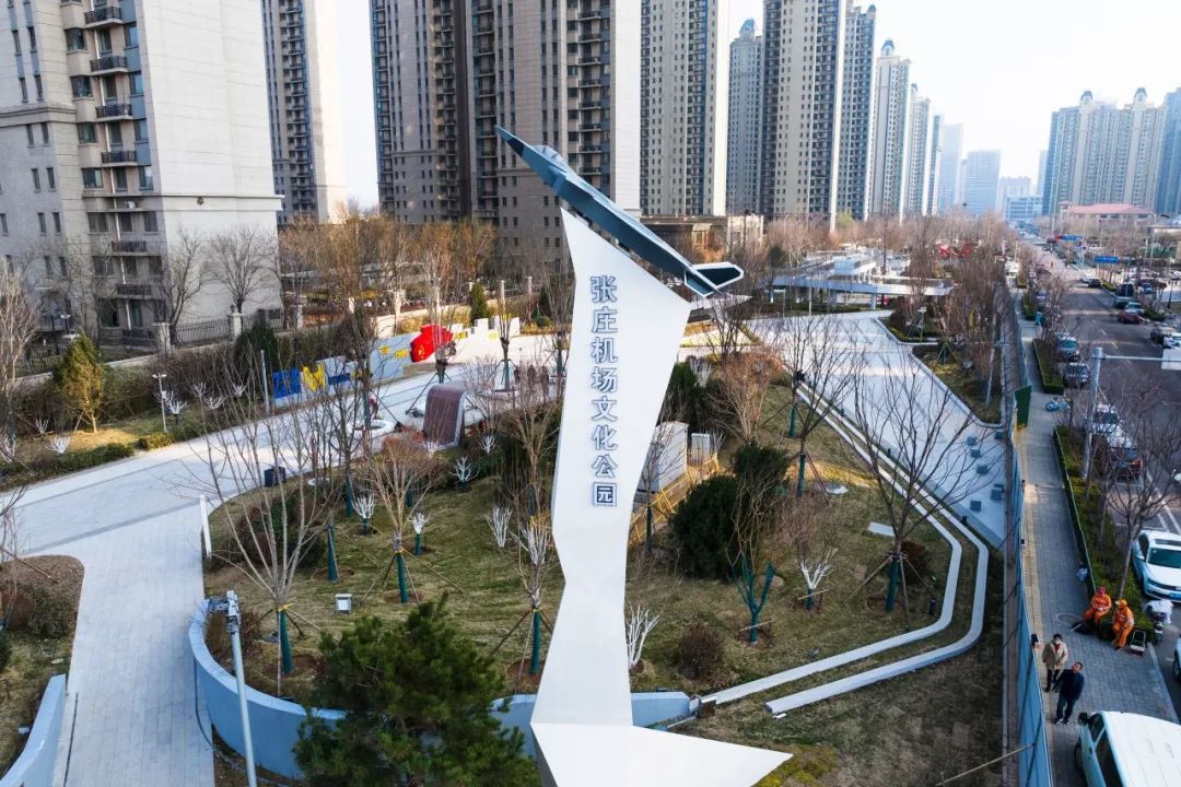 张庄机场公园项目位于青岛路以南,兴福寺路以北,紧邻滨州西路。其中北地块9689平方米, 南地块12790平方米,总面积约22479平方米。公园基底为济南张庄机场原址,公园设计区别于现有城市口袋公园及主题纪念公园的展现手法,以张庄机场历史沿革、空军战斗英雄、空军历代战机和主题雕塑为展示内容,综合考虑“时代、景观、人文”要素,将历史性、现代感、艺术性相融合,通过静态展示、场景还原、互动体验等展示方式进行航空科普、国防教育及爱国主义教育,是开放式城市公园及户外空军文化主题教育基地。公园建设内容主要包含园建、建筑、给排水、亮化、弱电及附属绿化等工程。