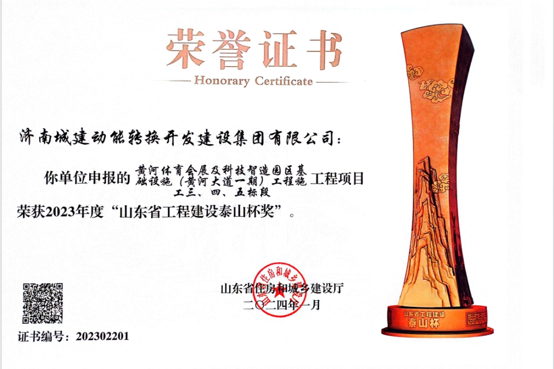 项目先后被评为“山东省建筑施工安全文明标准化工地”“山东省建筑工程优质结构”“全国质量信得过班组”等荣誉称号。黄河大道一期工程共计获工法13项,实用新型专利25项,总结QC成果3项,3项山东省团体标准,5项科技成果达到国内领先水平,并荣获BIM 2022年数字建造应用大赛一等奖、第十二届全国BIM大赛施工组三等奖、第四届市政杯BIM应用技能大赛施工组优秀成果奖等奖项。