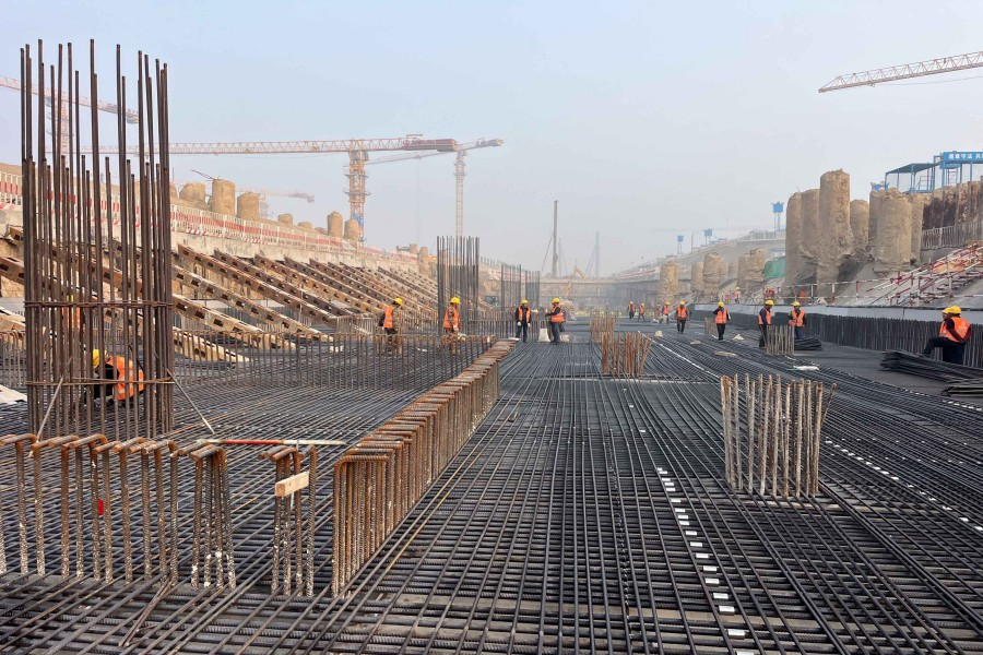 机场T2航站楼工程8号下穿通道首段底板浇筑完成
