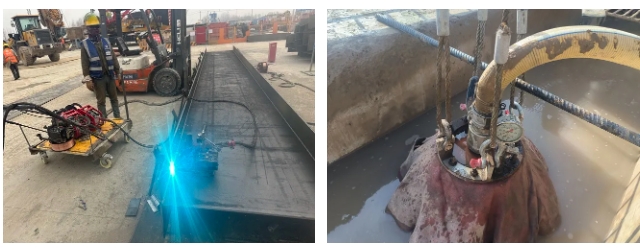 航天大道穿黄隧道工程(I期)包括隧道东岸始发井及明挖段围护结构采用地连墙+内支撑形式,共计地连墙87幅,使用工字钢3578米。项目部精心策划,通过方案比选,确定使用焊接机器人进行施工,较传统人工焊接工效提升3倍,费用降低93%。