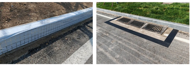 在鹊华西路沥青摊铺过程中,应用“沥青防裂贴”,在沥青施工缝处采用与设计同厚度的木条模板,保证面层厚度、压实度,省去切缝工序,保证沥青搭接平顺;在路缘石施工中使用“路缘石防油贴”减少沥青污染,保持道路整体的美观和使用寿命,减少维修成本。
