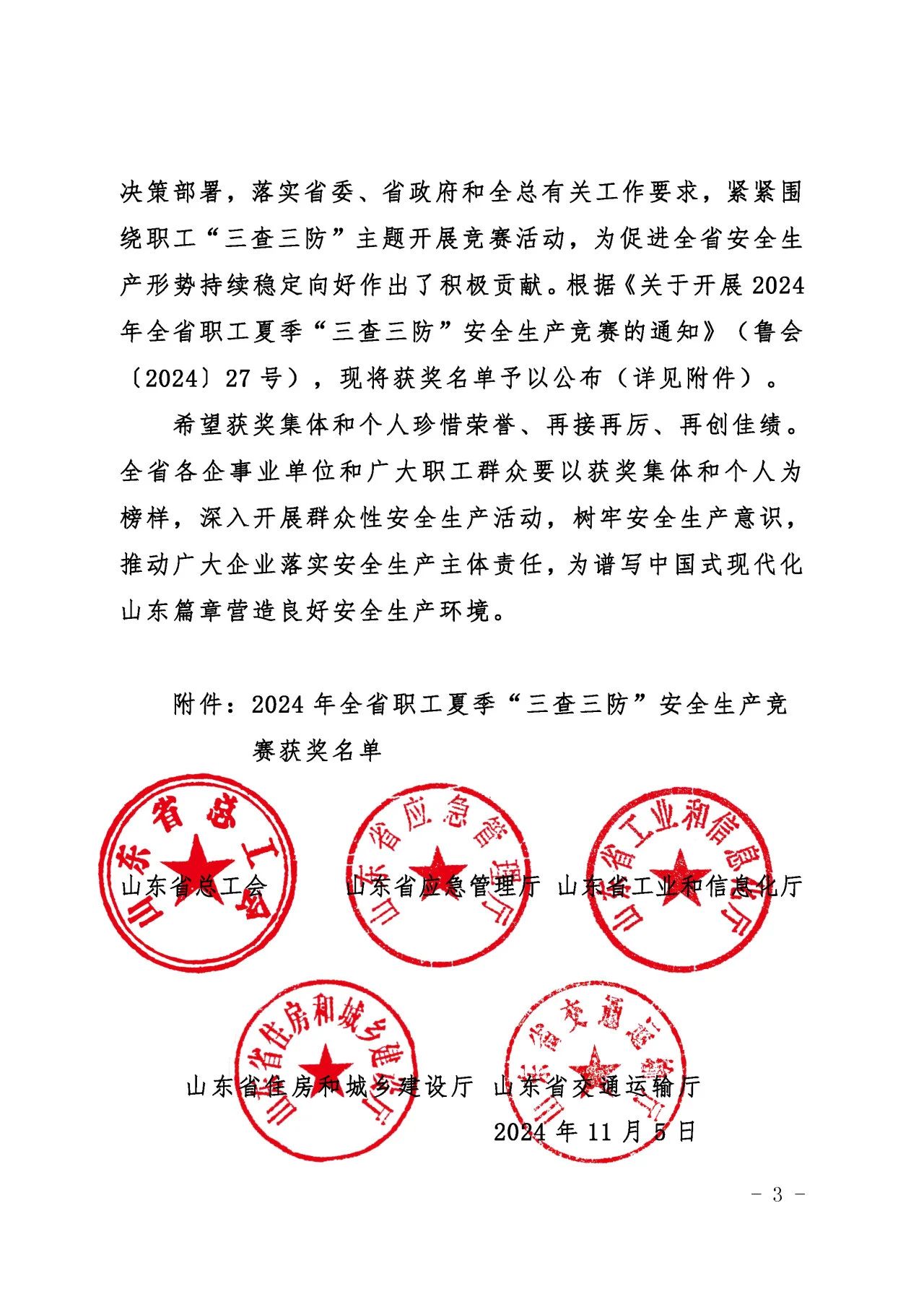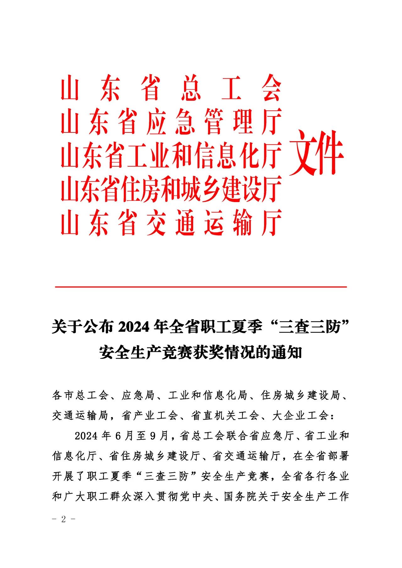 近日,山东省总工会、山东省应急管理厅、山东省工业和信息化厅、山东省住房和城乡建设厅、山东省交通运输厅联合发布了《关于公布2024年全省职工夏季“三查三防”安全生产竞赛获奖情况的通知》,PA集团官网质量安全部积极响应上级主管部门的号召,按照集团党委的科学部署,全面而深入地开展了各项安全专题活动,荣获“三查三防”安全生产竞赛优胜班组荣誉称号。