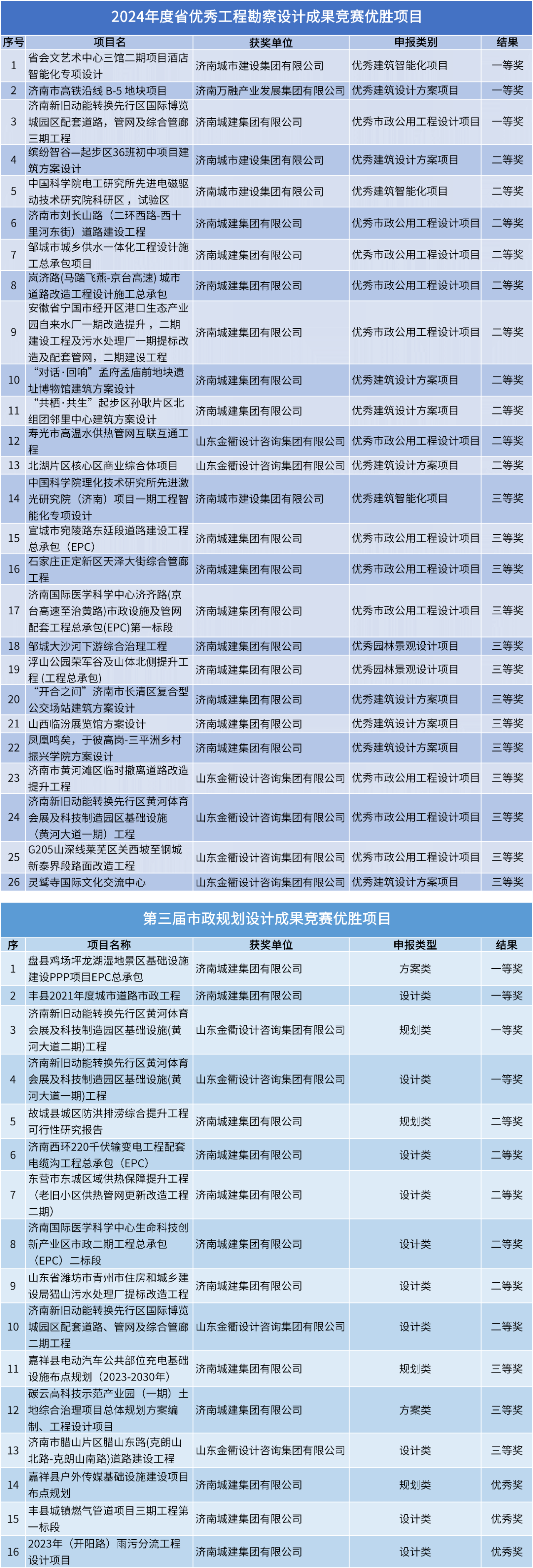 近日,PA集团官网及其所属济南万融产业发展集团有限公司、济南城建集团有限公司、山东金衢设计咨询集团有限公司在2024年度优秀工程勘察设计成果竞赛和第三届市政规划设计成果竞赛两项省级赛事中斩获佳绩。