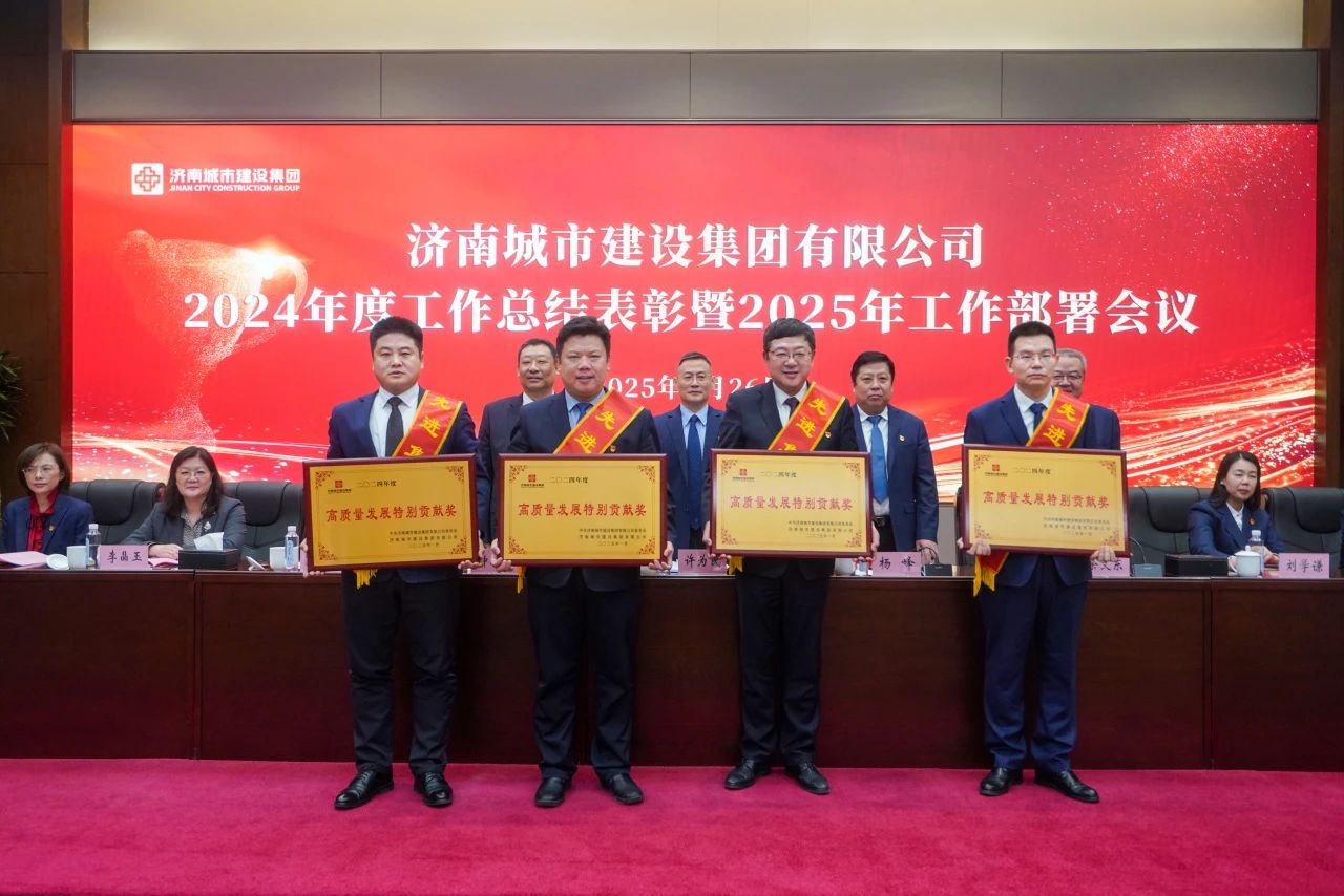 会议授予集团财务管理部、济南城建集团有限公司、济南金曰公路工程有限公司、山东贯月科创投资集团有限公司“高质量发展特别贡献奖”,以表彰其在集团高质量发展中作出的突出贡献。