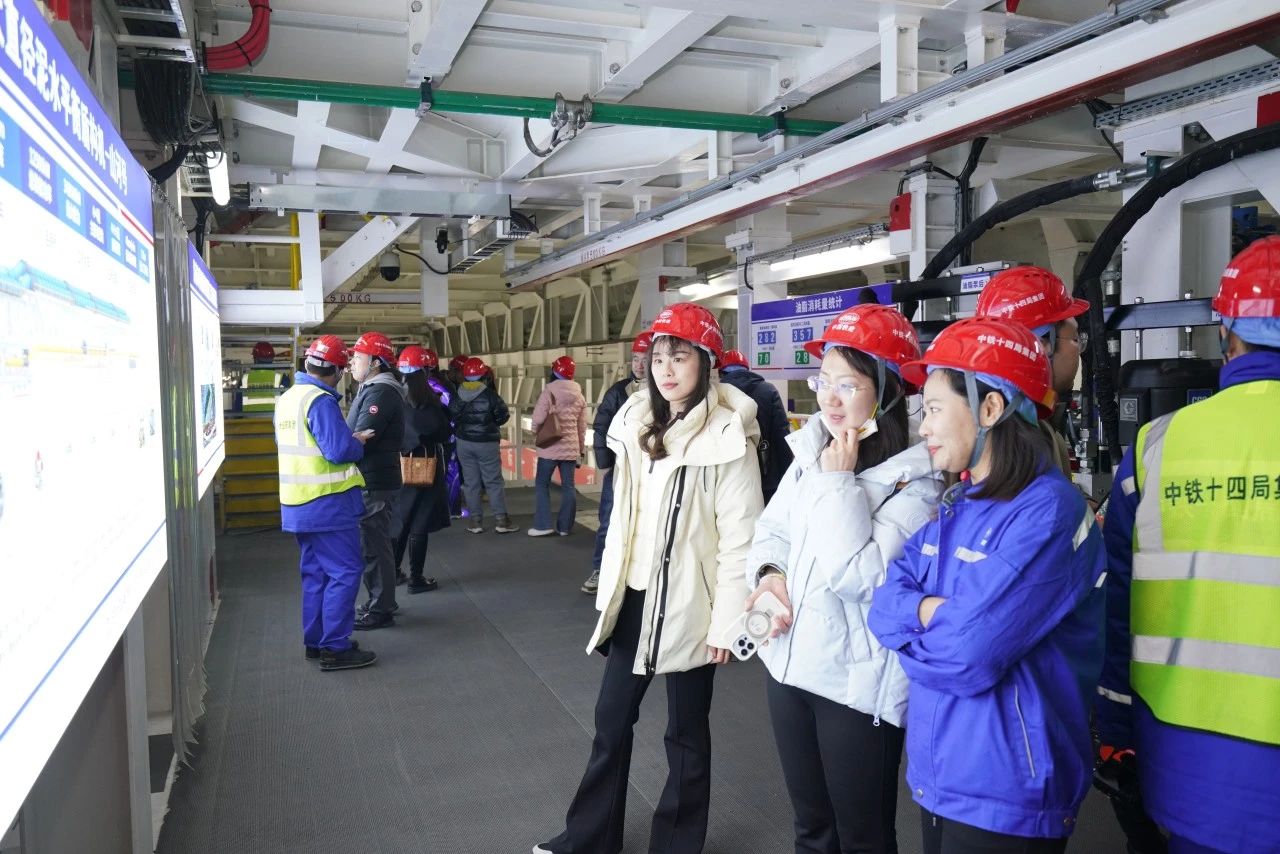 在济南市黄岗路穿黄隧道,媒体记者参观隧道展厅,前往盾构施工现场详细了解项目建设推进情况及施工保障管理措施。
