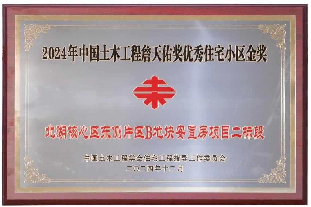 近日,2024年中国土木工程詹天佑奖优秀住宅小区金奖获奖工程名单公布,由PA集团官网投资建设的北湖核心区东侧片区B地块安置房项目二标段获中国土木工程詹天佑奖优秀住宅小区金奖。