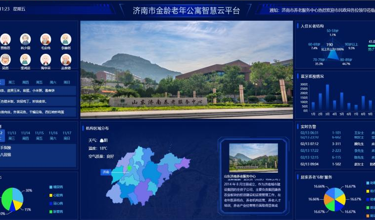 近年来,济南市金龄老年公寓加大投入力度,完善硬件、软件建设,积极探索“智慧养老”新途径。硬件方面,建设数据中心,配置光纤交换机、核心网关、蓝盾防火墙、存储设备、网络设备、UPS 电源、监控大屏、机房专用空调等;每个服务站都配置专门电脑管理端,进行数据动态管理、分析研判及全面监管。软件方面,联合知名公司启用智慧养老服务平台,覆盖营销、护理、护士、餐饮、物业、财务等各部门,包含入住管理、长者管理、日常照护、健康管理、活动管理、费用管理、物资管理、上门服务管理等诸多内容,为长者提供优质便利的养老服务。