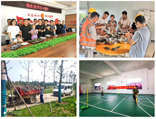 工程四部分别组织所属黄河防护林提升工程项目部、先行区市政道路项目部、济南四建集团新旧动能转换先行区孙耿街道七村整合安置区(一期)工程项目部及各参建单位开展以“我们的节日•端午”为主题的端午节包粽子、挂艾叶、卫生清理等活动。大家一边包着粽子,一边交流各自家乡的端午习俗,感受着“家”般的温暖。