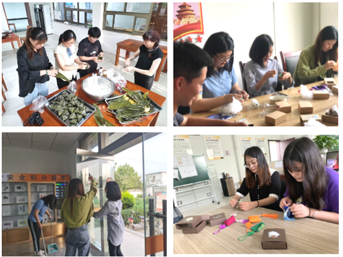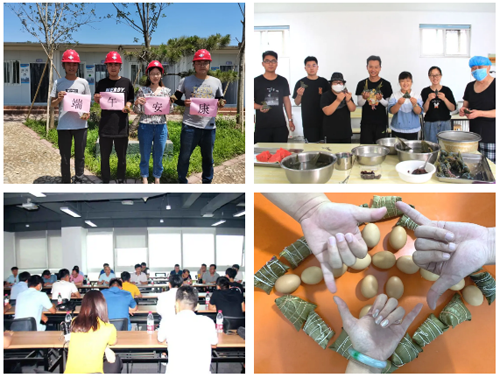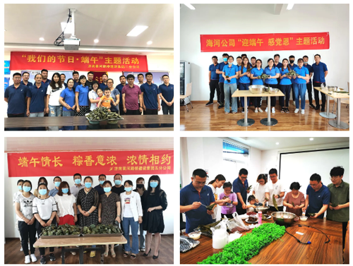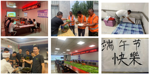 公司在各项目开展“我们的节日·端午”主题活动,与坚守施工一线的员工,共话端午。项目人员“撸起袖子”打扫项目家园、防疫消杀;“穿针、引线”缝制承载美好祝福的五彩香囊;“折粽叶、填糯米、放蜜枣、裹叶子”齐动手包香粽,如家人欢聚,在欢声笑语中品味端午传统民俗,传承中华优秀文化。