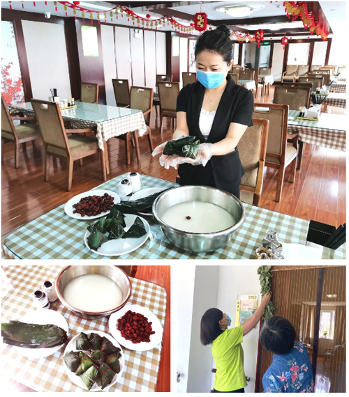 为响应疫情防控的号召、保证长者的生命健康安全,金龄健康-山东济南养老服务中心的舜耕餐饮以及园区的工作人员们亲手包好了粽子,将饱含着“端午安康”寓意的粽子亲手送到每位长者的家中。同时,工作人员们挨家挨户为长者赠送艾草,并帮助长者将艾草悬挂在门口。长者朋友们亲手为园区的工作人员们编织了驱灾病、保安康的五彩绳,并以诗词等形式为工作人员送出了美好的祝愿。