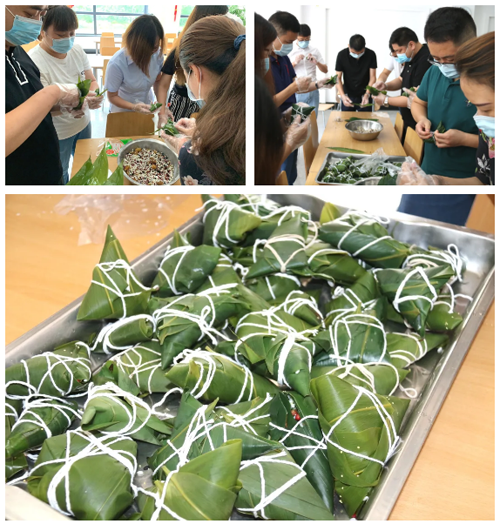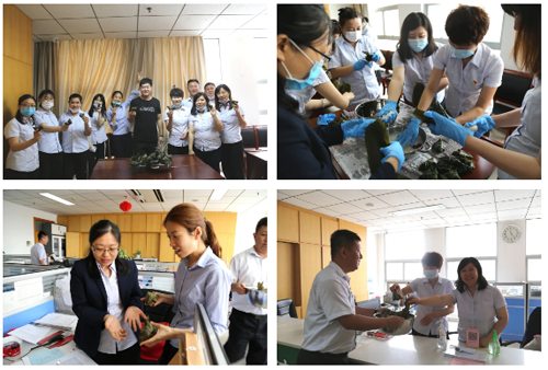 公司组织全体员工开展以“品味端午粽飘香、传承悠久文化情”为主题的迎端午包粽子送安康活动,大家一边卷叶、盛米、压枣、缠绳,一边话家常,在欢声笑语中,一只只粽子很快就堆满了一盆,大家把满满的快乐和祝福都包进粽子,分享给广大员工。