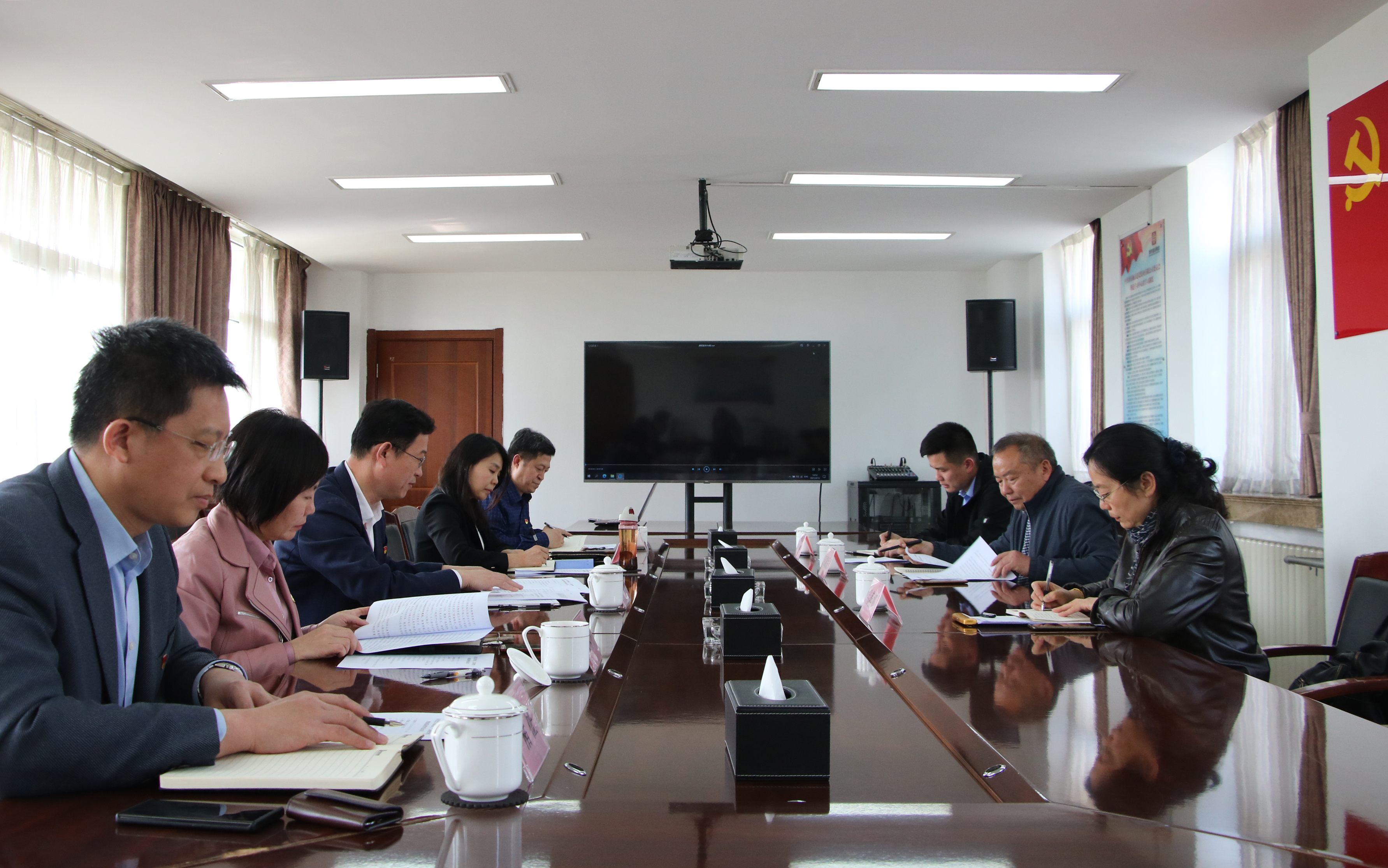 4月12日,市委党史学习教育第二十二巡回指导组到访集团,就集团党史学习教育开展情况进行调研、指导。第二十二巡回指导组组长、天桥区政协副主席马敬民,副组长、市市场监督管理局一级调研员吕燕娜,集团党委书记、董事长张海平,党委副书记姜秀杰,党委委员、纪委书记刘学谦,第二十二巡回指导组成员,集团相关部室负责同志参加活动。
